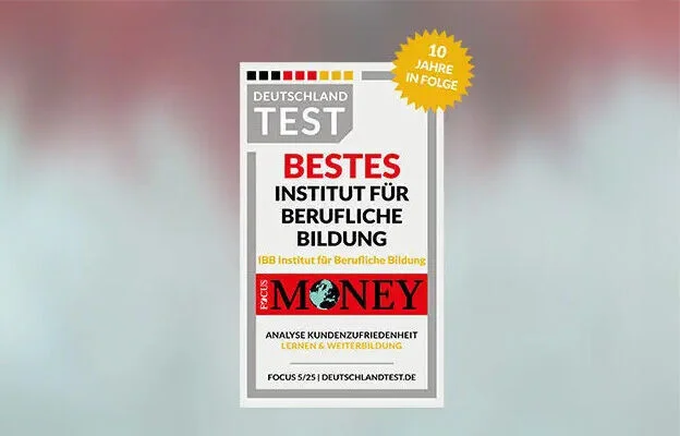 Das IBB hat in der aktuellen Studie „Deutschlands beste Weiterbildungsangebote“ von Deutschland Test erneut den ersten Platz in seiner Kategorie belegt. Damit konnte das Institut bereits zum zehnten Mal in Folge eine Spitzenposition in der Kategorie „Institute für berufliche Bildung“ behaupten.