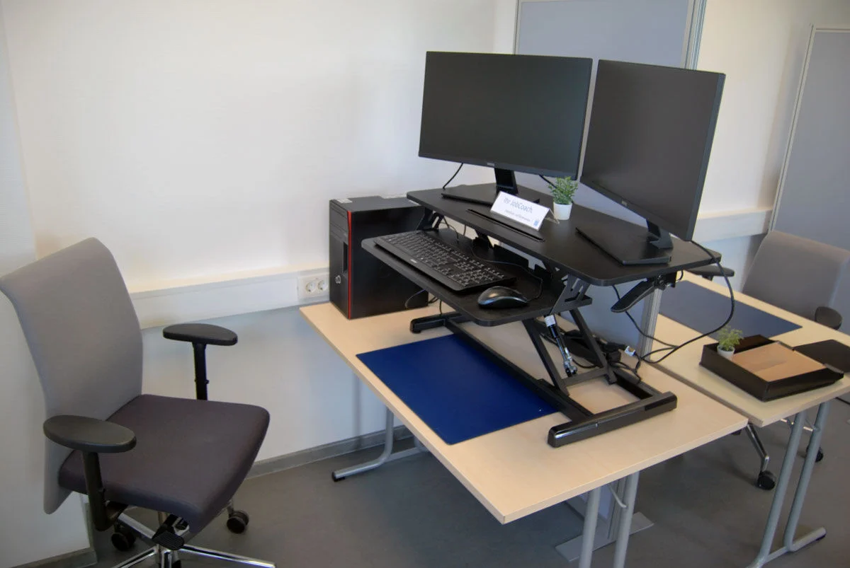 Der Standort in Heppenheim ist mit öffentlichen Verkehrsmitteln oder auch mit dem PKW gut erreichbar; Autofahrer finden ausreichend Parkmöglichkeiten. Hereinkommen und wohlfühlen: Starten Sie den Tag mit einer Tasse Kaffee und nehmen Sie an Ihrem höhenverstellbaren Schreibtisch Platz. Oder fahren Sie ihn als Steharbeitsplatz ganz nach oben. Wer möchte, kann den Stuhl zwischendurch auch gegen Sitzbälle tauschen. Stärken Sie sich während des Lerntags mit freien Getränken und „Nervennahrung“ – es steht alles für Sie bereit. Lesebrille vergessen? Sogar Ersatzbrillen liegen hier parat. Auch sonst haben die Mitarbeitenden vor Ort immer ein offenes Ohr für alles, was Ihnen auf dem Herzen liegt. Und Menschen mit Handicap sind selbstverständlich „mittendrin“.